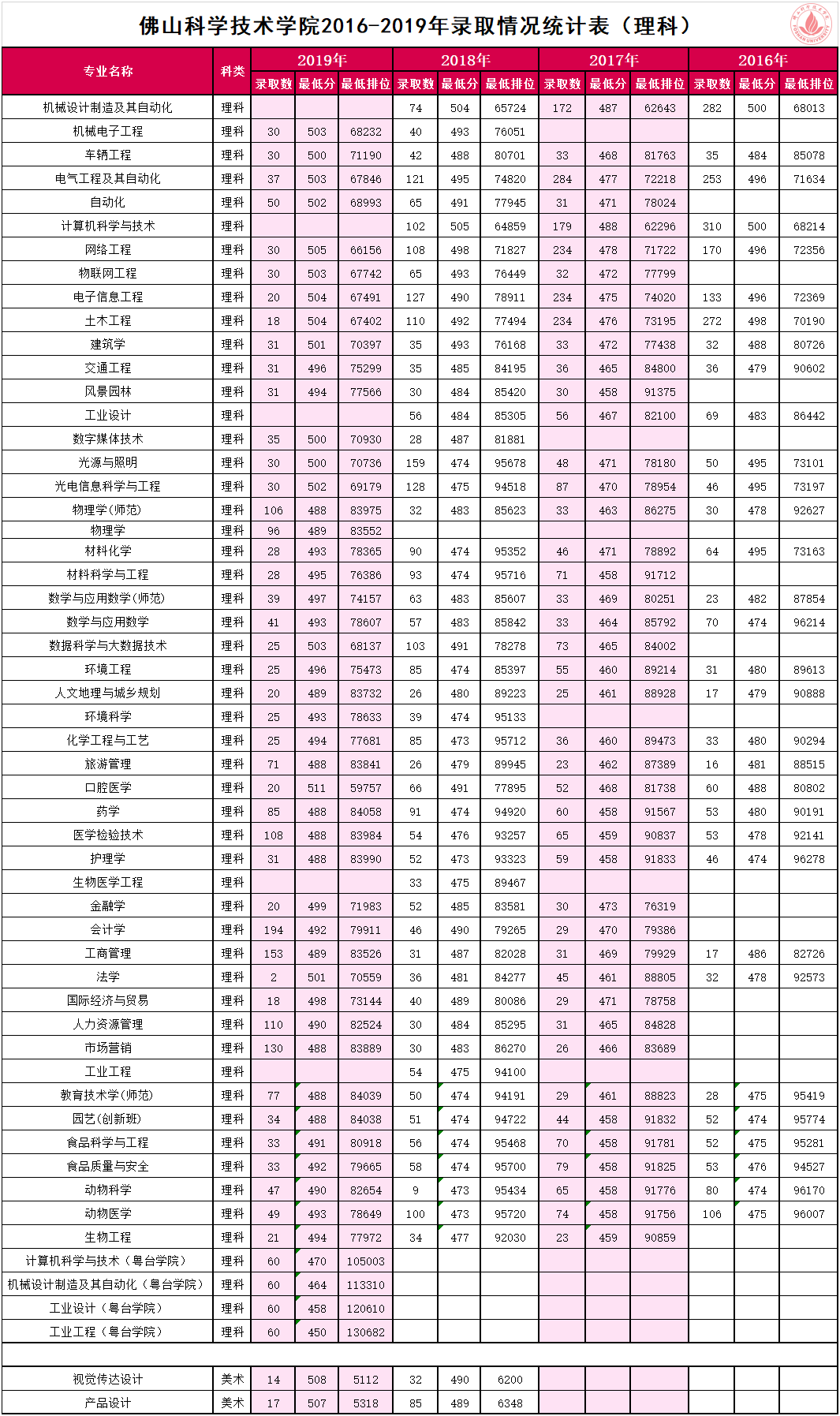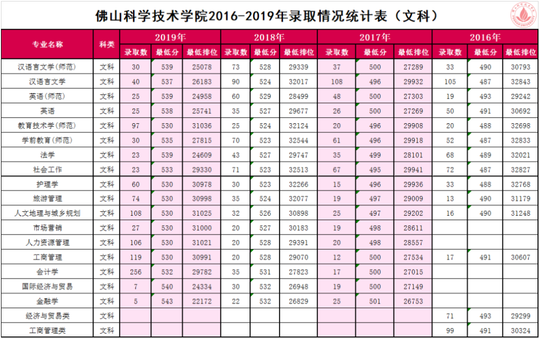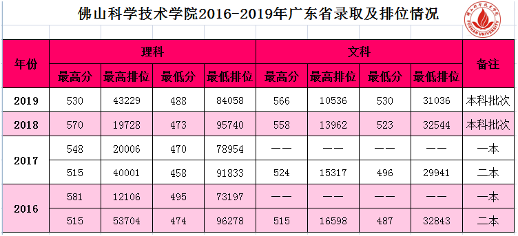 佛山科学技术学院2016-2019年高考录取分数线及排位情况,为大家倾情奉上!