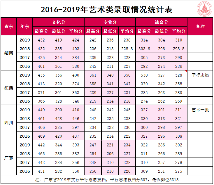 2016-2019年艺术类录取及排位情况